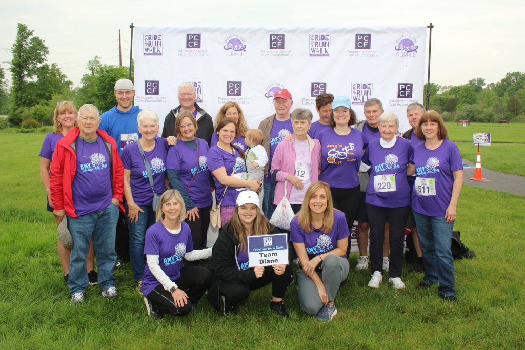 Team Diane formed years ago and participates in Amy’s Ride/Run/Walk in honor of pancreatic cancer survivor, Diane Landis. She was diagnosed in 2010 and underwent surgery soon after, on April 28th, at Jefferson Hospital. Her surgeon determined during surgery that her entire pancreas and spleen needed to be removed. She instantly became a diabetic (and has diligently maintained her health ever since!) Following the operation, she had chemotherapy at Lehigh Valley Hospital and after that radiation. She has been cancer free for 14 years and continues to enjoy a life filled with family, friends and faith. She is an inspiration to all of us. She has had a positive attitude through it all!